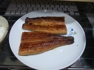 夫婦で一緒に食べたかったけれど、こういう日に限って娘の寝つきが絶望的に悪い。ひとりでうなぎ。中国産も愛知静岡産も外して、あえて鹿児島産で。