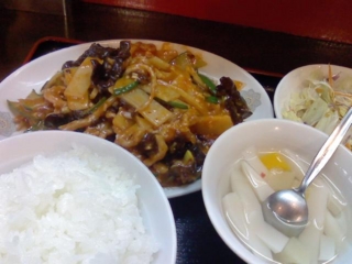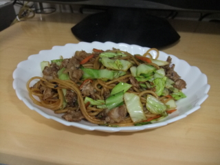 回鍋肉を意識して、具は豚・キャベツ・人参。見た目は汚くてしょっぱそうだけど、意外と甘かった。