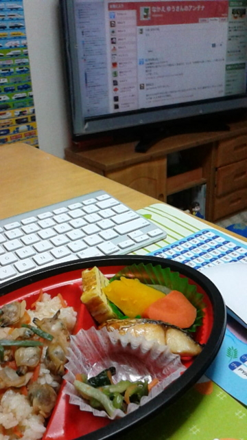 いつもは、梅干しや漬物はカミさんに食べてもらうんだけど、居ないから抜いてもらった。
