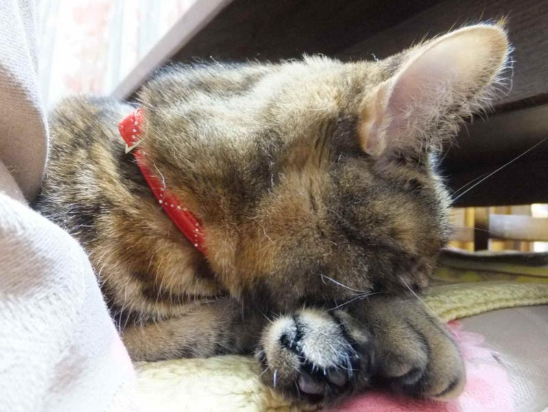 またも寒さが戻り、ほかほかマットでおやすみの姫様。