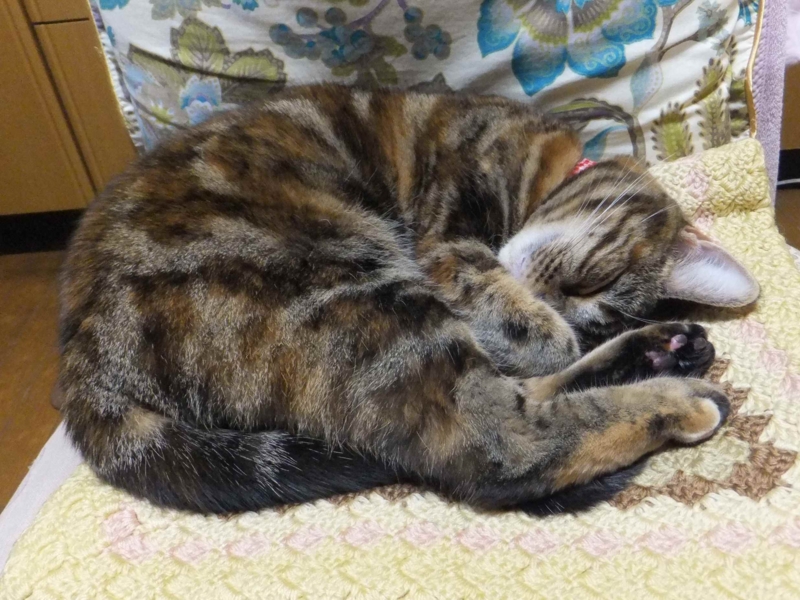 姫様、母上大臣お手製の布団(じゃ無くって座布団)でお休み中。