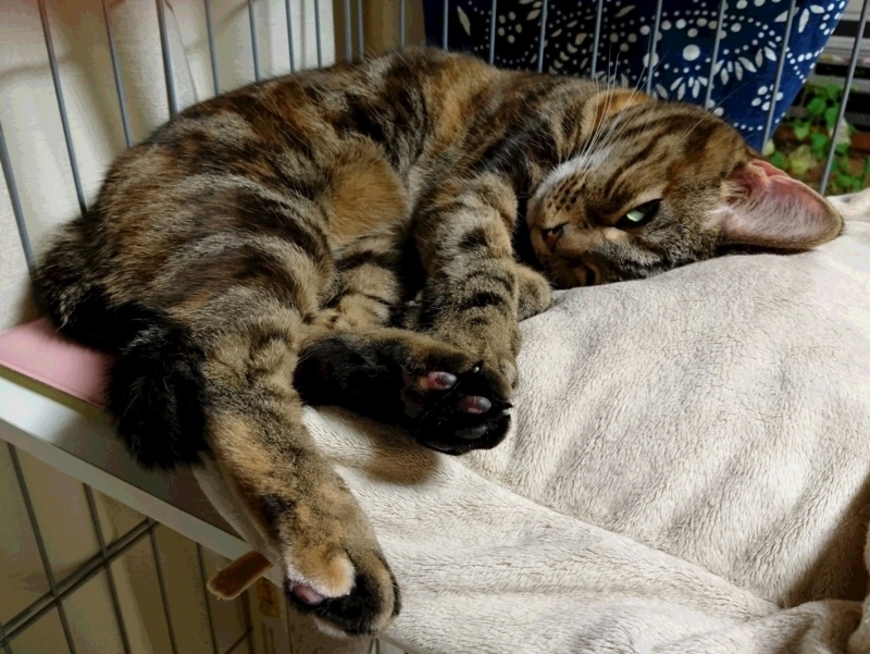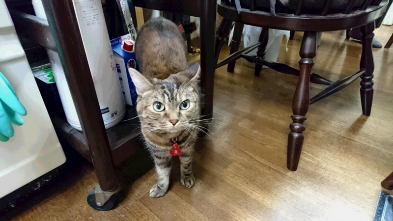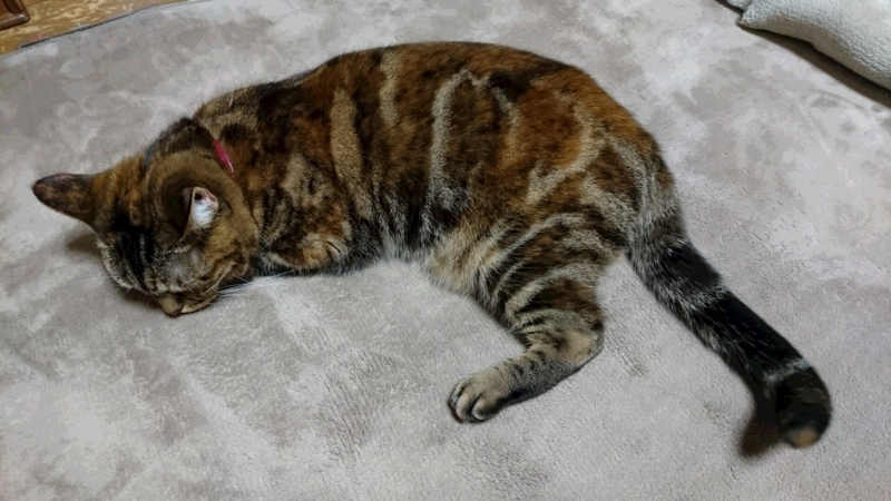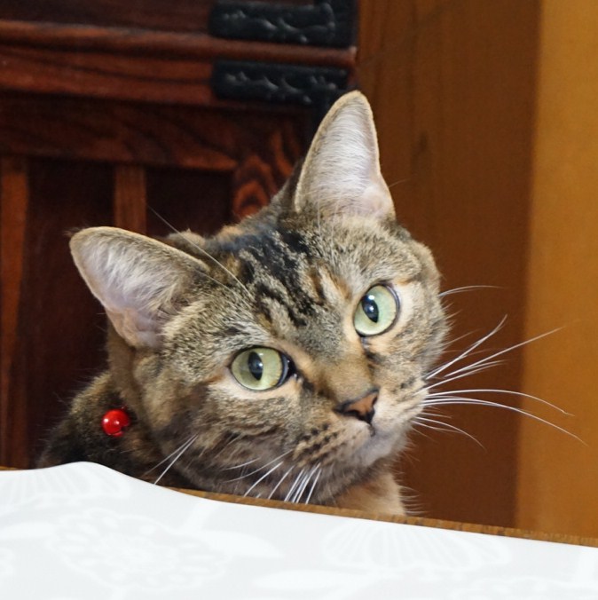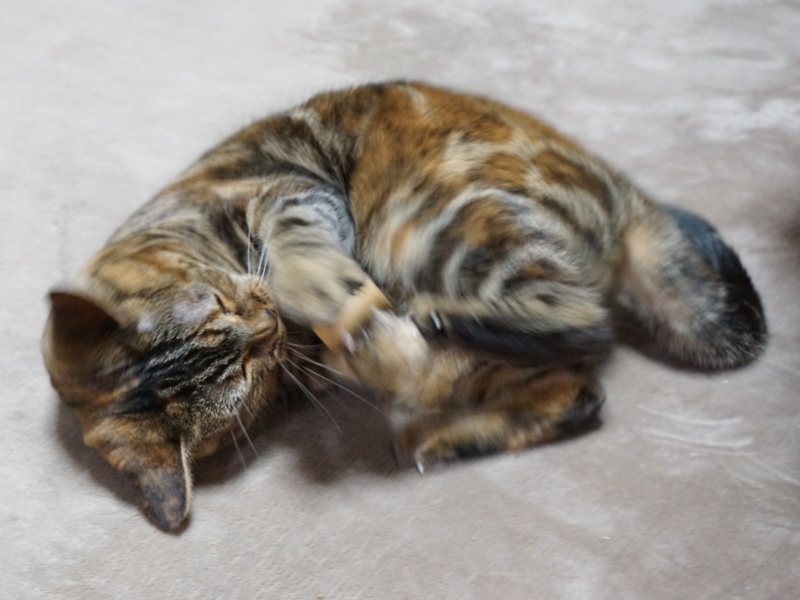 毛づくろいしながら何故か顔を隠してしまう姫様。