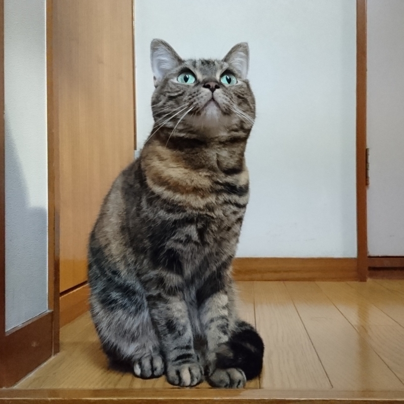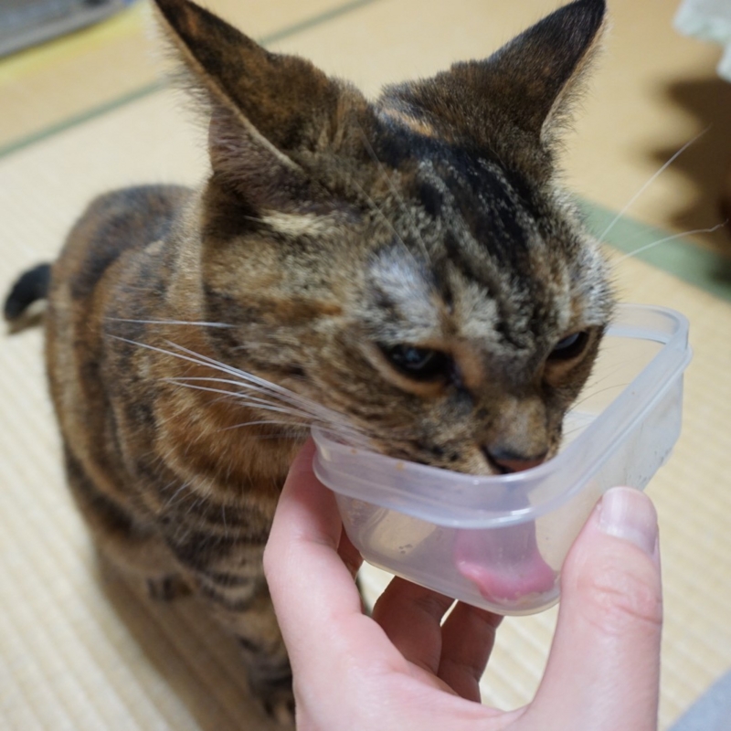 夜のウェットフード計量を狙う姫様(空き缶をもらえるので)。