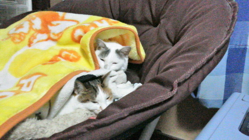 きなこは基本的にひとりで寝たい派なのでくっついているのはちょっぴりの時間です(*´∀`)