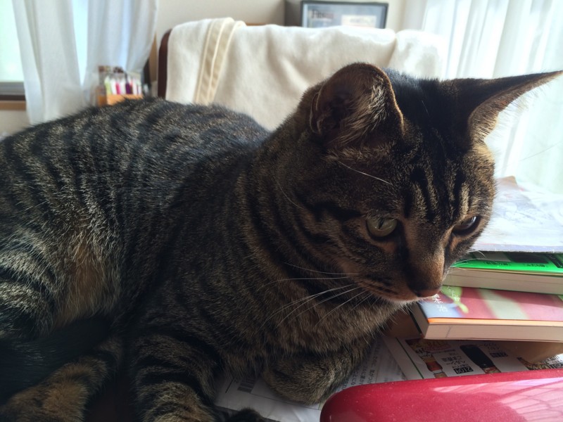 私はみい太に腹を立てて、こんな子いらん、邪魔やと思ってるのに、空気読めない猫であるみい太は、遠慮なく私の膝に乗ってお腹にもたれてごろごろ言ってる。