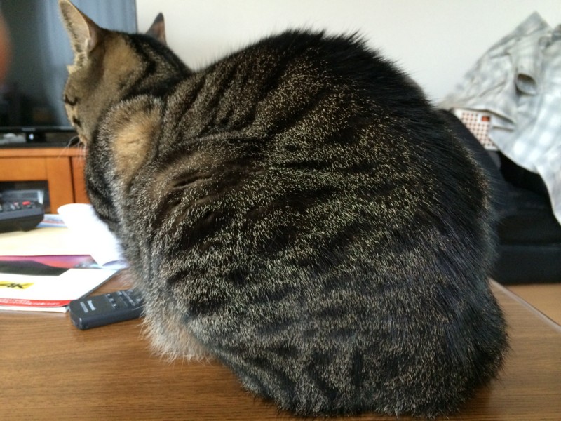 さっきも寝室の前の廊下で回収に出す古新聞をまとめたりする作業をしてたのに、いつもなら必ずちょっかい出しにくるヤジ猫がまったく顔を出さなかった。