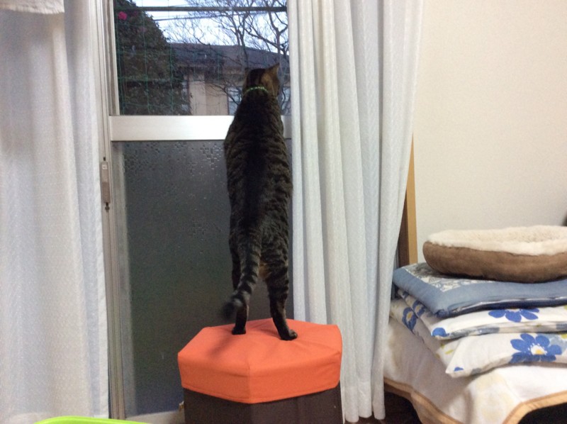 やっとおこたから出てきたと思ったら、今度は窓際で寝てる。