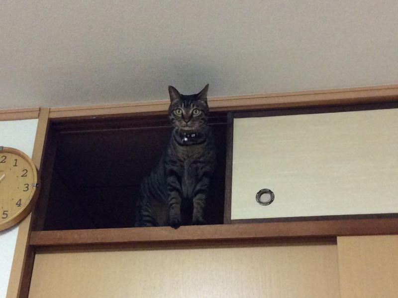 脚立の上があかんのなら、ここで…って、そんなとこで落ち着かれても、私そろそろごはん食べたいんですけど。