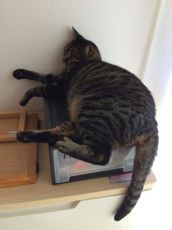 今日はめずらしく冷房入れた部屋でおとなしく寝ている。