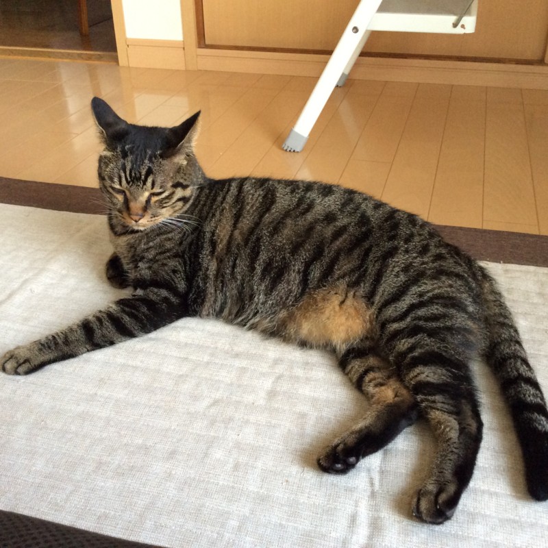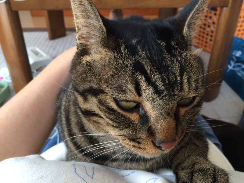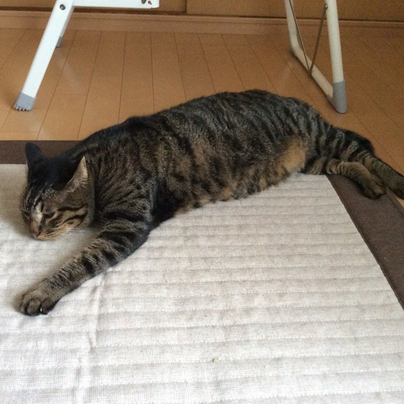 暑さのせいか、猫の顔もちょっと虚ろな感じ