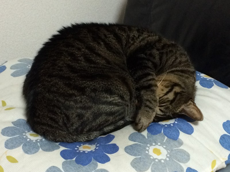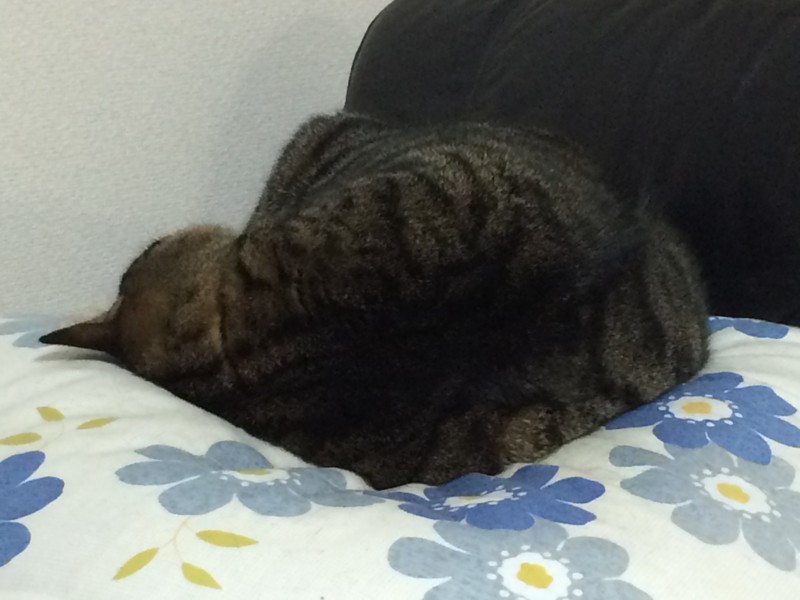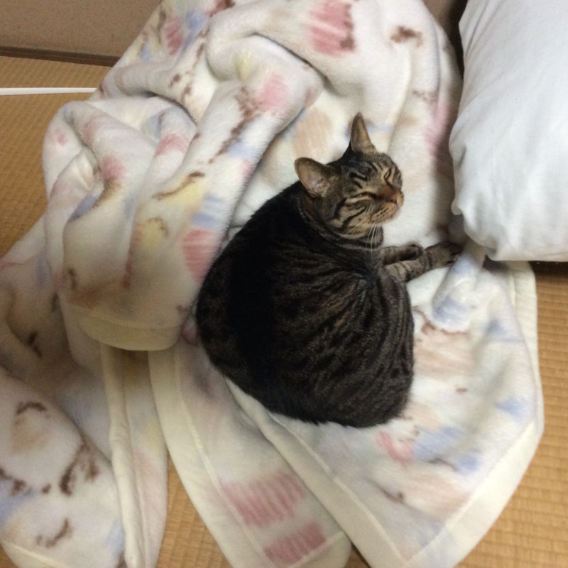 今日もまた猫がうるさいのでお布団を敷いてやったら、もう静かになってお布団の上。