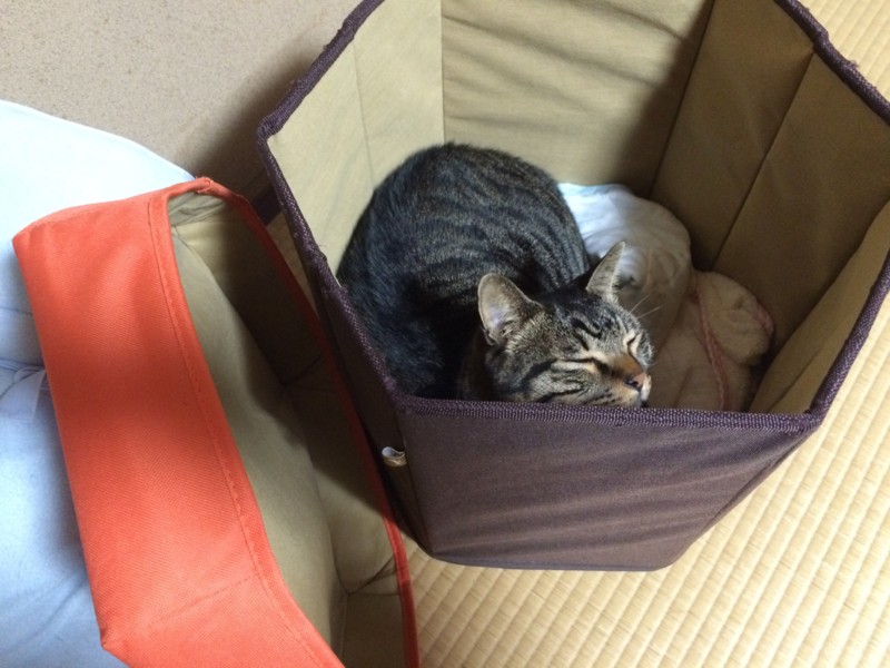 寝室に置いてあった物入れ兼用スツールの蓋を勝手に開けて中で寝ていた。