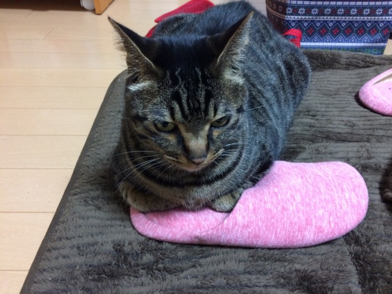 猫の姿が見えないので、また寝室で?と思って見に行ったら、いつも引っ張り下ろしているお布団も半纏もちゃんと台に積まれたまま。
