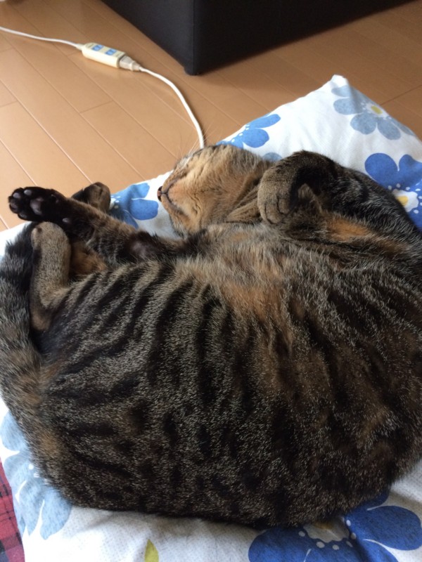 寝ている猫の格好が可愛いので写真を撮ろうとしたら、iPhoneを取り出しただけで気づいて嫌な目つきで睨んだ挙句、顔を隠してしまった。