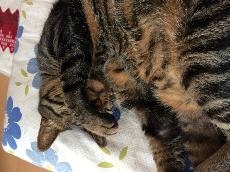 朝、私が起きた時に一度挨拶でもするように起きてきた猫は、その後すぐ二度寝に入ってしまった。