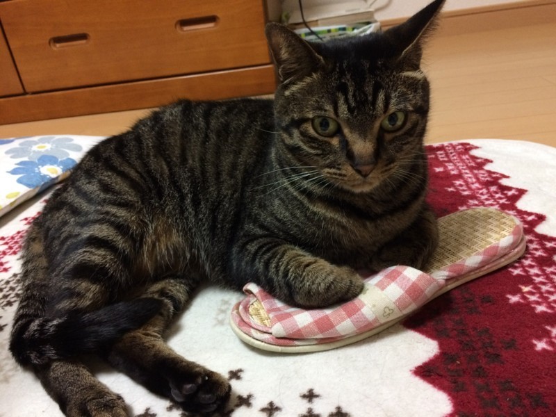 バッグでもスリッパでもなんでも自分のクッション代わりにするねえ。