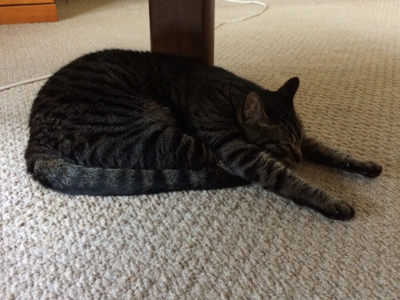 今日は昼間ずっと立て掛けたマットの間にはまり込んで寝ていたから、夜中ちゃんと寝てくれるかしら。