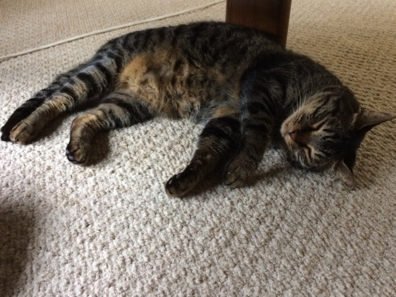 うるさく鳴くし、つきまとうし、水を吐くし…で、具合でも悪いのかと思ったが、大好きなブラッシングをしてみたら、上機嫌でクネクネごろごろ、猫の開き状態にもなっている。