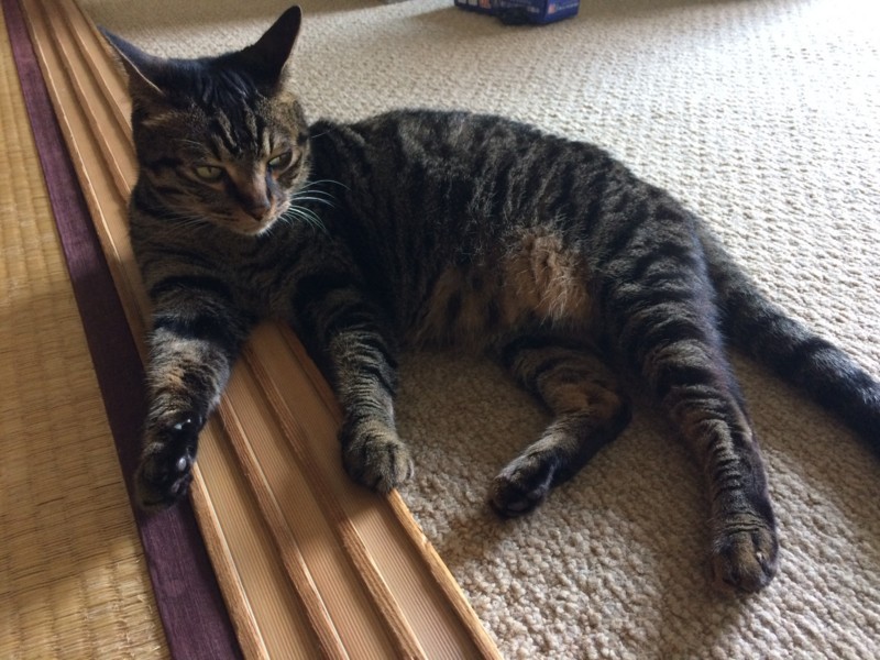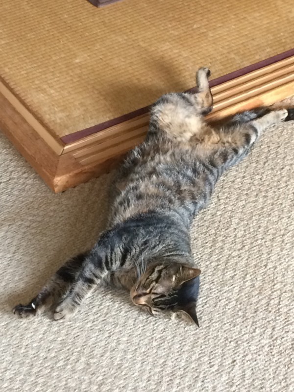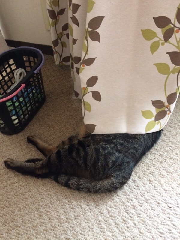 今朝もまた寝室にしている和室でマットを立て掛けた途端、別のところで寝そべっていた猫がやって来てマットの隙間に入っていった。