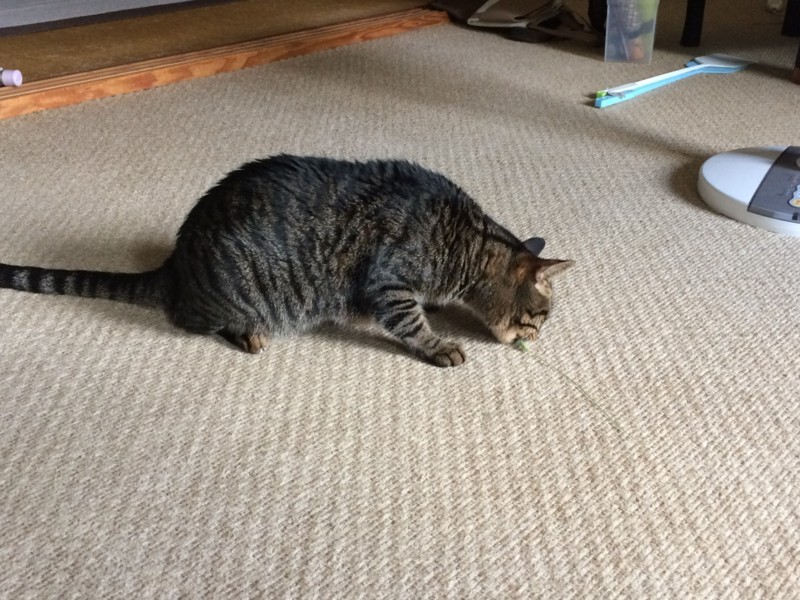 写真を撮ろうとしたら起きて、その後はまたいなくなったので、たぶんマットの隙間に行ったと思われる。