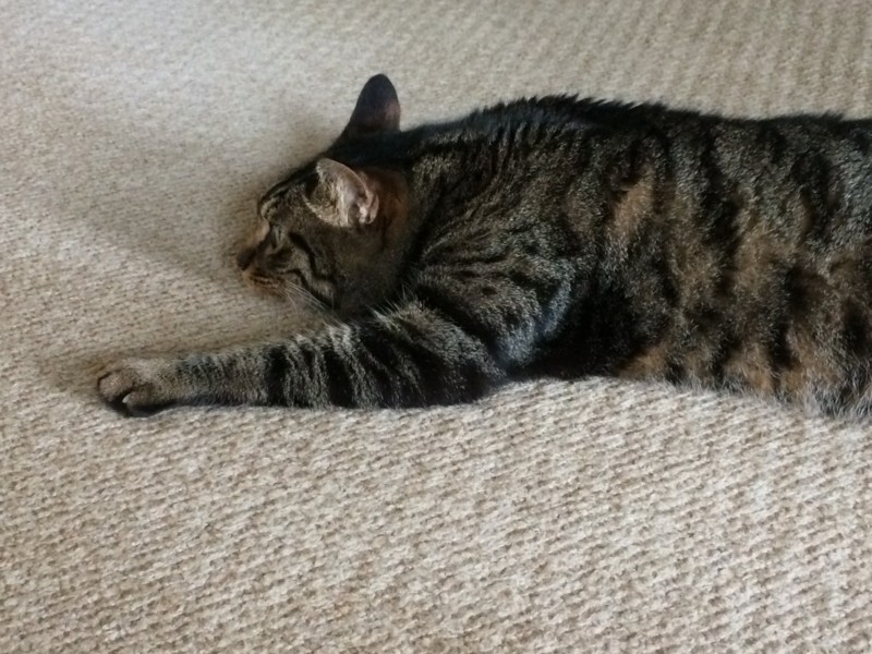 私が夕方外から戻ったときにちょっと顔を出したけど、その後まったく姿が見えないと思ったら、またマットに挟まって寝ている。どんだけ気持ちがいいと?
