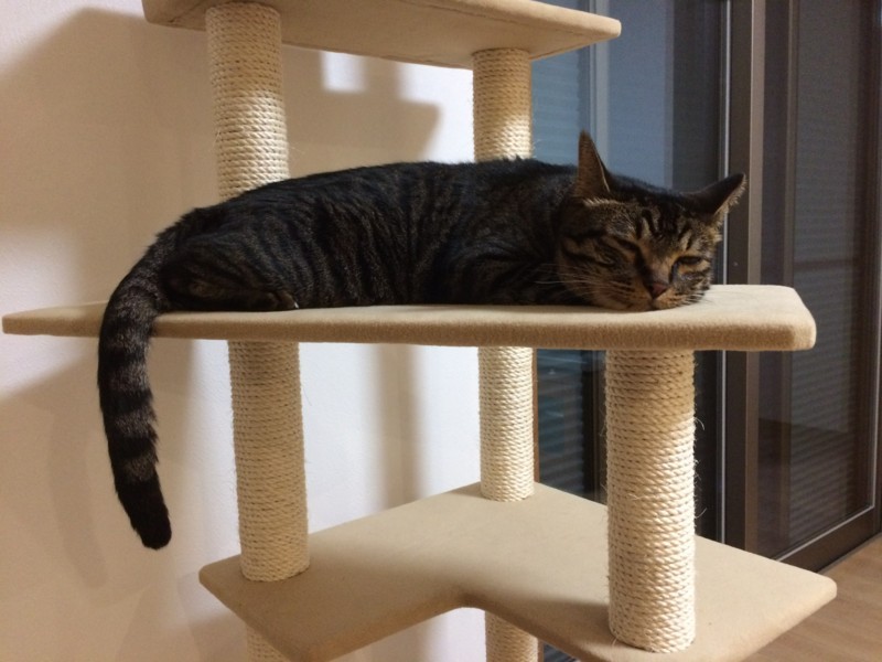 新しいキャットタワーの試用もしています。
