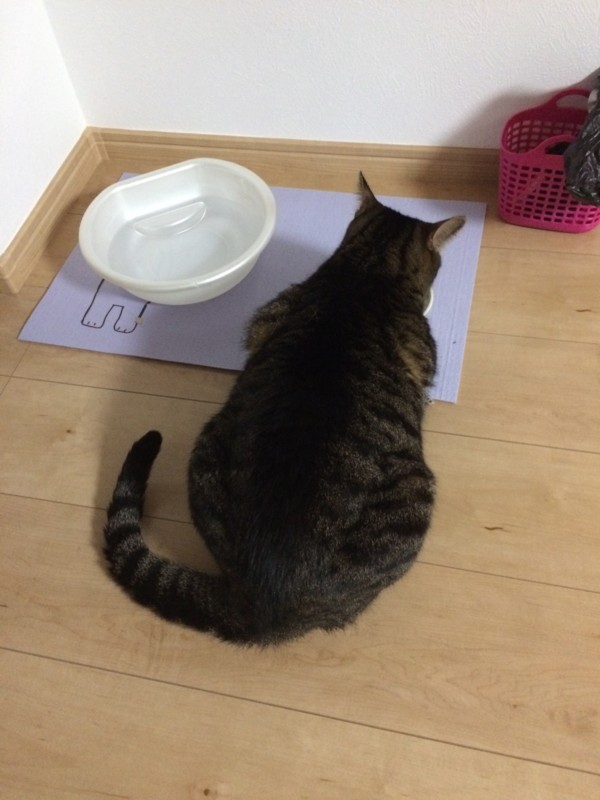 ずっと寝ていた猫がようやく起きてきて、浴室にお水を飲みに行った。