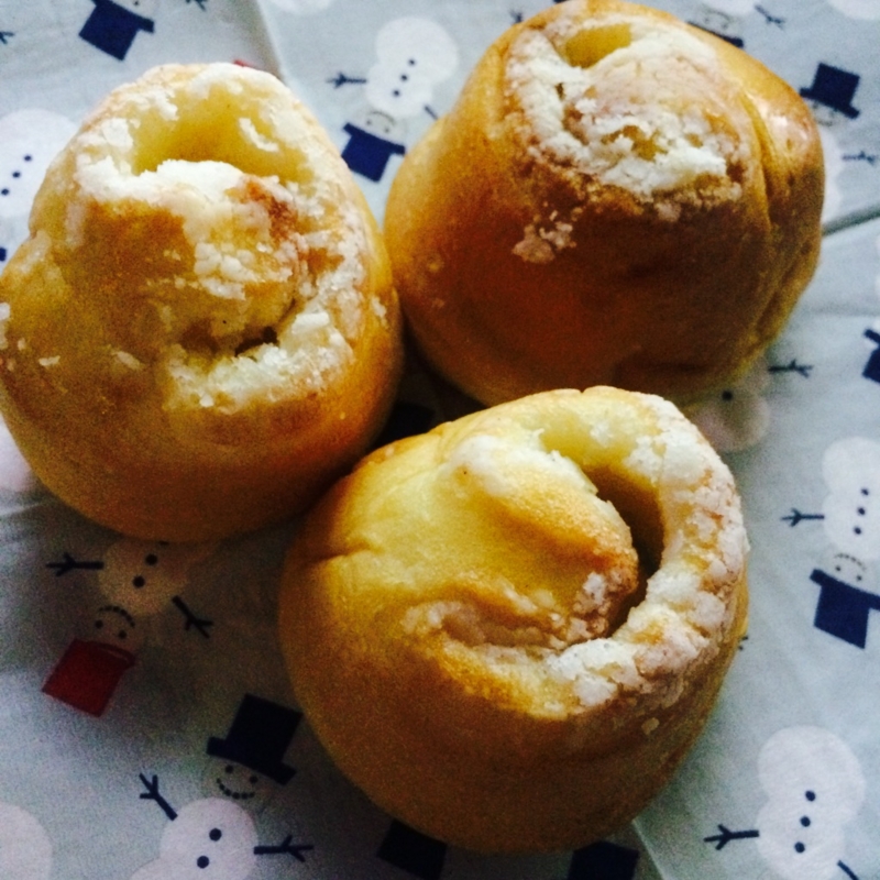 昨日パン屋さんで買ったシュガーなんとか。 持ち帰るまでの間に、すでに若干かたくずれしてた… てのひらに収まるほどのサイズなので3つ買っといた。