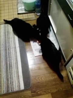 朝のネコは人よりも活発です。