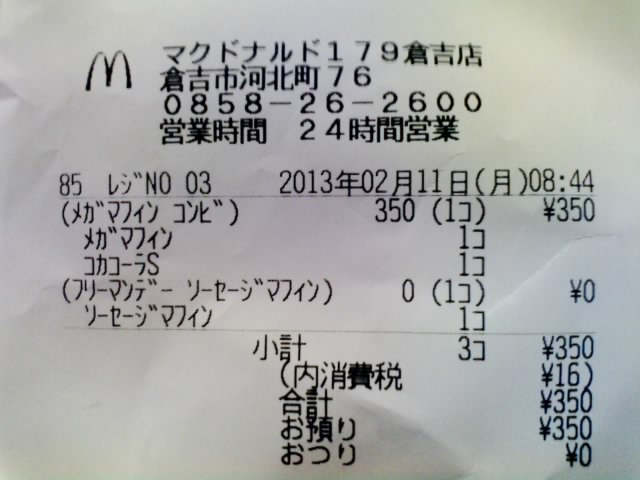 (もちろんソーセージマフィンがタダになるのを知ってですが^^;)