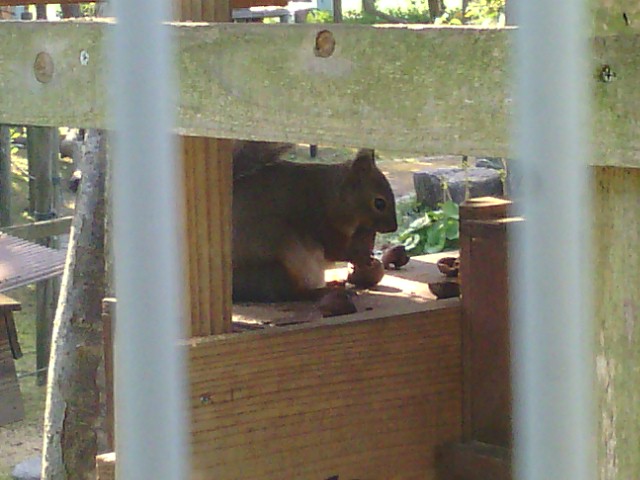 檻の外でリスを10分ほど眺めていました。