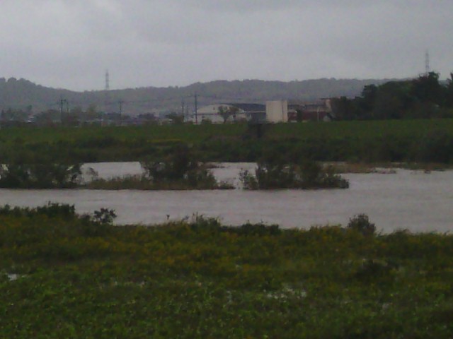 今回の台風と直接関係無い鳥取ですが、昨夜からの雨の影響で自宅横の川(一級河川)が増水しています。