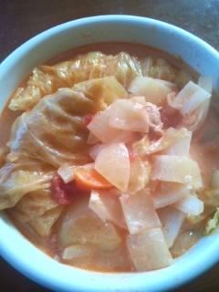 先日のボルシチ鍋の半分残した分、 サワークリームを加えて作ったよ。トマトクリーム味?