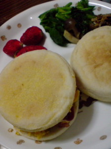 イングリッシュマフィンサンド(ベーコンとたまご、はちみつ)