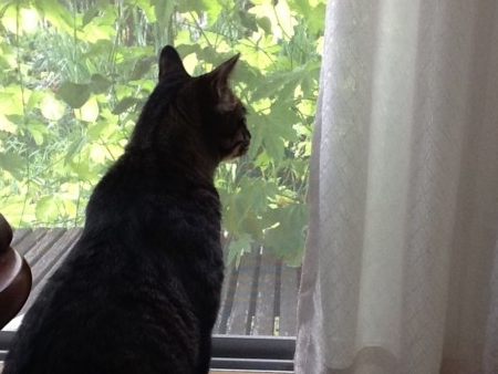 猫は朝からセミの声や飛んでる虫が気になって仕方がないらしい。