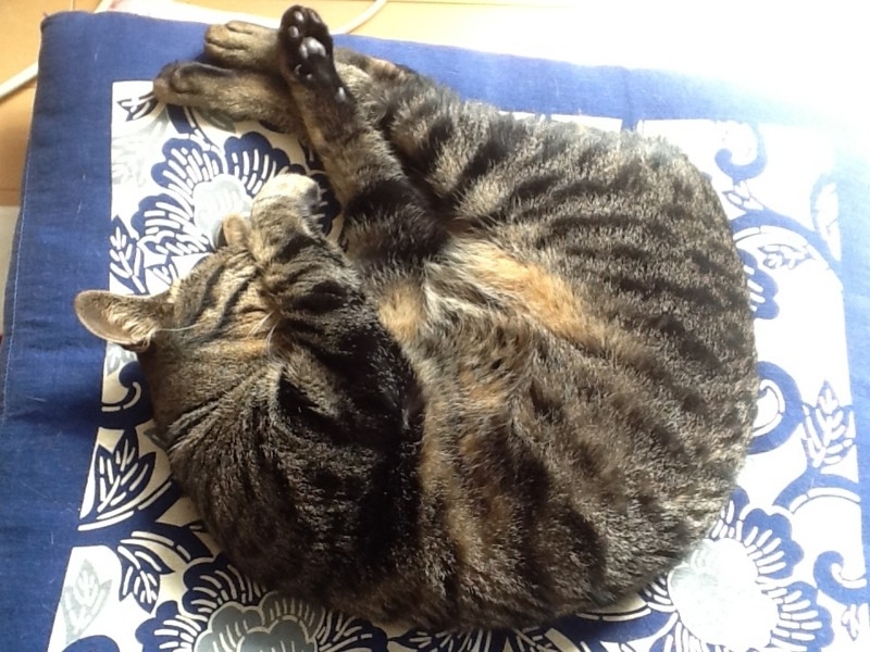 5時すぎに目が覚めてトイレに行ったら、めずらしく猫が聞きつけて起きてきて、それから布団に戻った私の胸の上に乗るやら、布団のまわりで騒ぎ回るやら。結局ちょっと寝ては起こされ、またちょっと寝ては起こされの繰り返し。わたしゃ、そんな早く起きる気はなかったのだよ。
