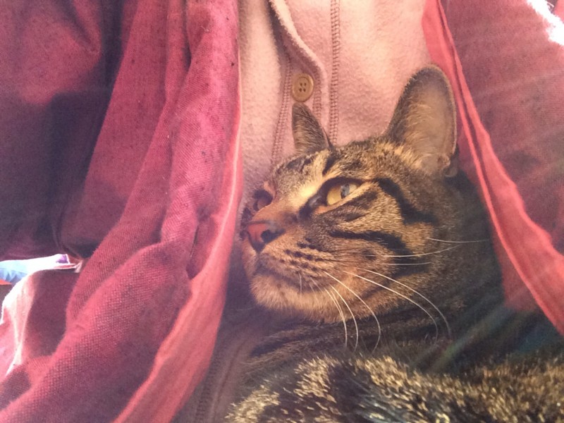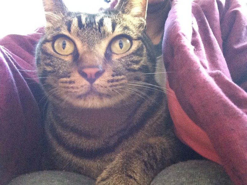 うちの猫の「落ち着く寝床」は、三角座りした飼主の膝とお腹の間だそうです。ということで、今日もここから朝のご挨拶。