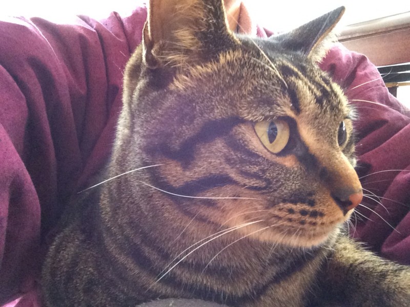 朝はべったりくっついて離れてくれない猫。そんなにくっつきたいなら、お布団に寝に来ればいいのに。