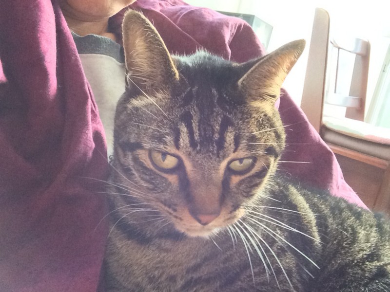今朝も石みたいに重いものを膝に乗せてハイク見てます。