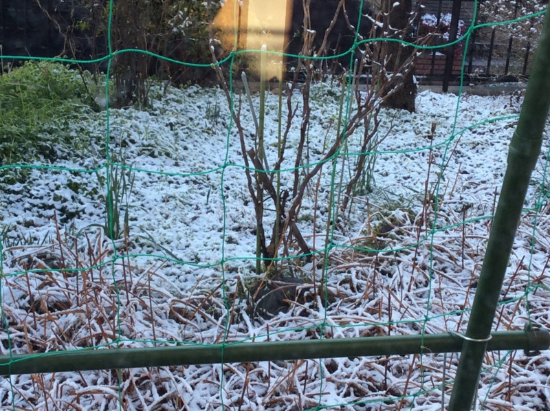 朝起きて雨戸を開けたら庭がこんな感じだったので「え、いつの間に?!」と驚きました。でも、お天気が良くて日が当たっているので、もうすぐ気温が上がって融けてしまいそうね。