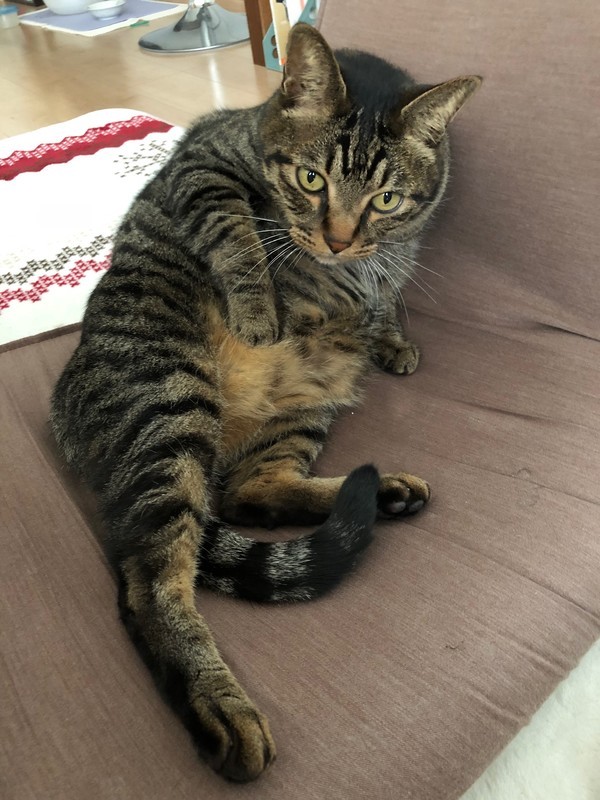 今日も猫に席を取られて、私は地べた(ラグはあるけど)に座っています。