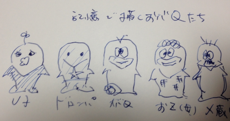 厨子王さんのドロンパに導かれてU子を描いたらそれっぽいのが思い出せたので調子にのってオバQの両親まで頑張ってみたらお父さんが大変なことに。お母さんもオバQが何かの回で誰かの母親を演じたときみたいになった。道は遠い。