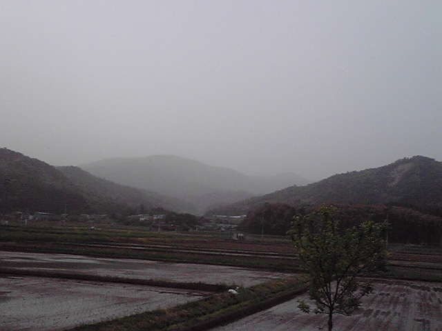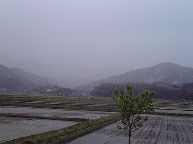 空がゴロゴロいって 雨が降り始めています@京都北部