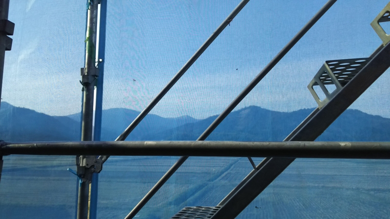 今週から我が家の外装工事に入り窓を開けるとこのような景色です