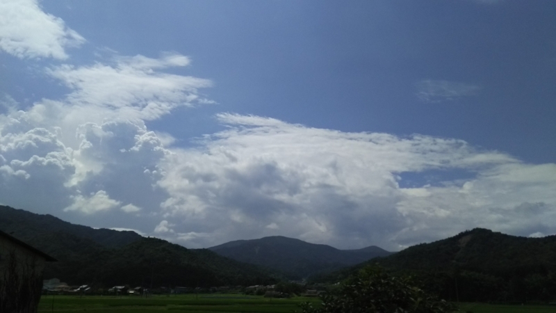 朝は怪しい空模様の下、洗濯物をだしたらパラパラと雨が落ちてきて慌てて撤収したのですが