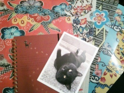 掃除してたら出て来た紅型クリアファイルとお母さん、妹からのプレゼントのジジノートとごろ猫ポストカード。