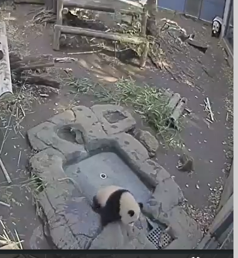 水風呂入るのよー(後ろ向きで後ろ足から水に浸かるシャンシャン)