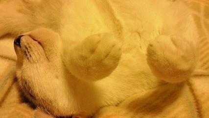 ヒトの膝の上で寝るのはイイけど なんだろう? その前脚…。