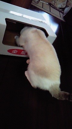気に入ったようなので 中にタオルを敷いてあげました。^^