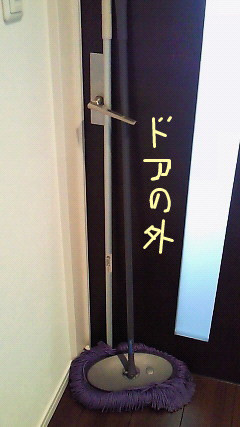 ドアを脚立がブロックする形になって、内開きのドアは開かない。